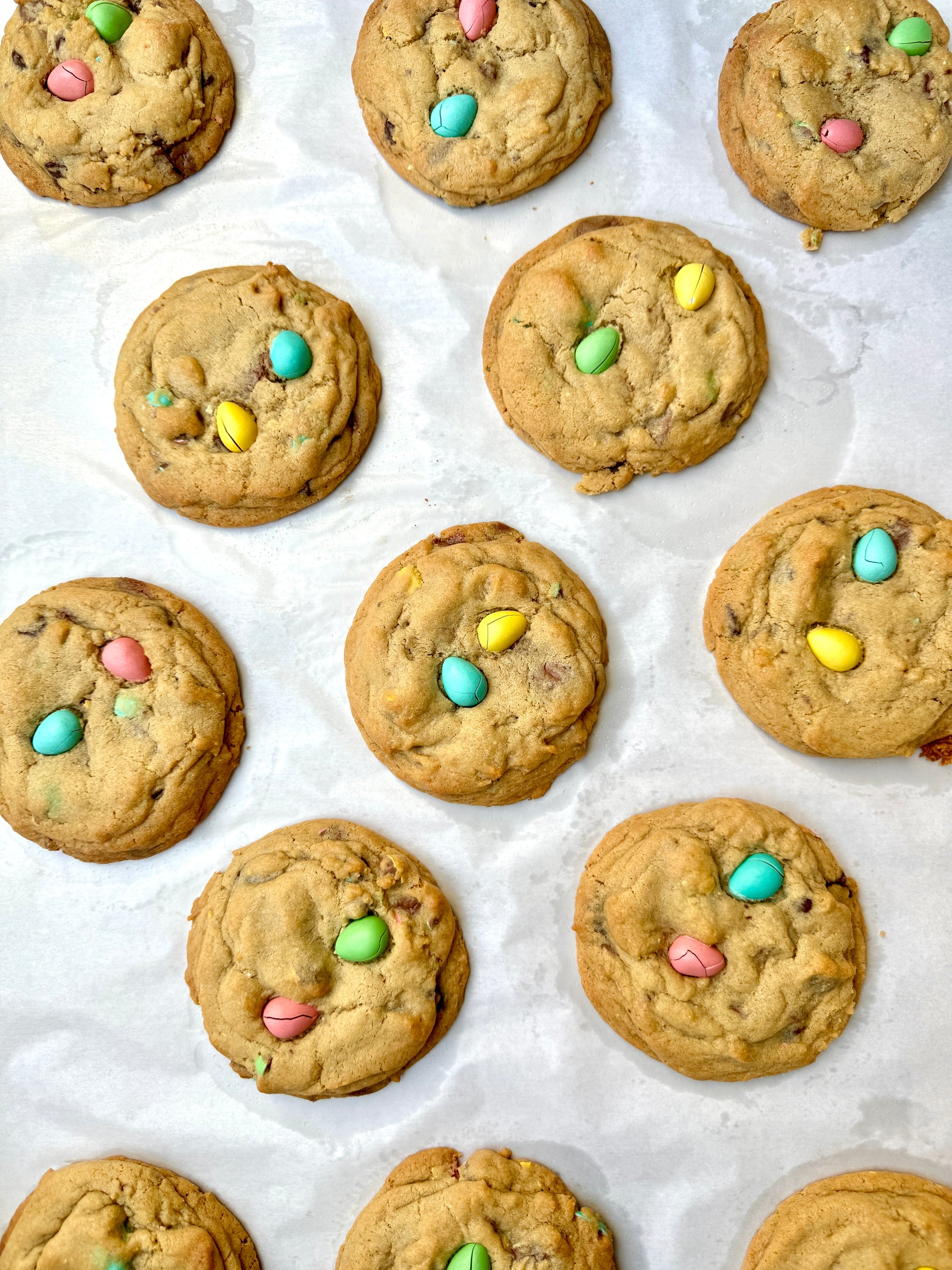Our classic vanilla sugar dough, loaded with Belgian milk chocolate chips and tons of smashed Cadbury mini eggs, topped with MORE mini eggs!