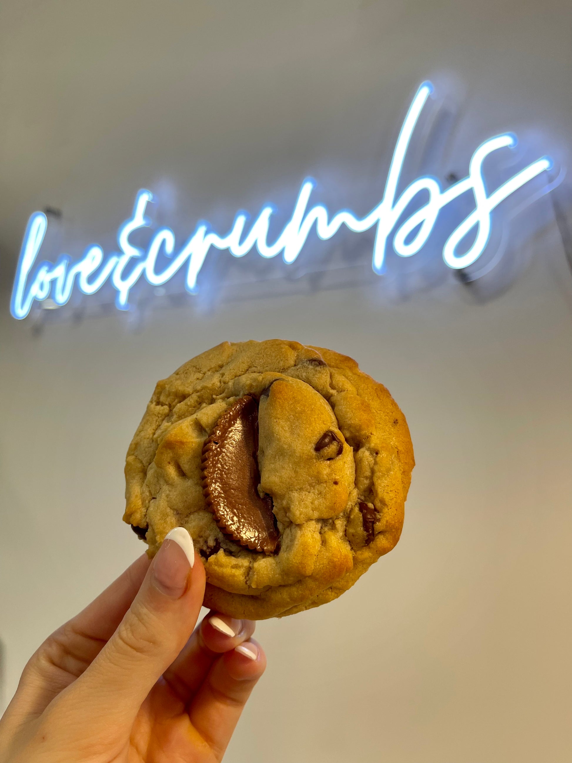 Our peanut butter cookie dough, loaded with semi-sweet chocolate chips & Reeses cup!