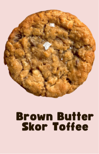 Our beloved brown butter vanilla oatmeal cookie, loaded with semi-sweet chocolate & Skor bits. Finished with Maldon's flaked sea salt. *contains Almonds*